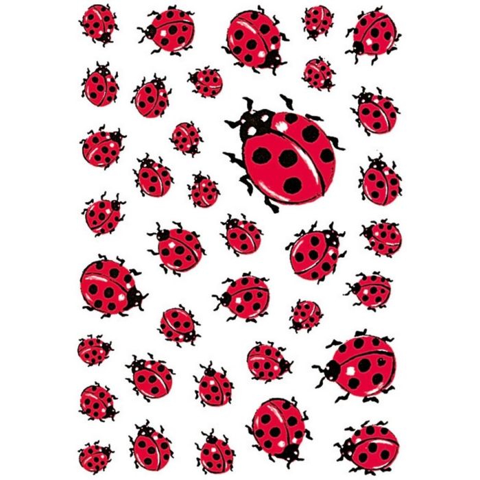 Stickers autocollants en papier.Motifs : Coccinelles.Conditionnement : 3 planches de 37 étiquettes.